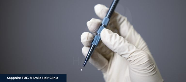Die Saphirhaartransplantation erfolgt mit der neuesten Technologie. Fue Haartransplantation wirkt sich positiv auf das Ergebnis der Haartransplantation und den Prozess des Patienten aus. Obwohl einige Kliniken für die Saphir-Fue-Methode zusätzliche Gebühren verlangen, kann die Smile Hair Clinic keine andere als die perfekte Methode akzeptieren. Die Zufriedenheit unserer Patienten hat für uns höchste Priorität. Aus diesem Grund ist die SAPHIR FUE-Haartransplantation die Standardanwendung für SMILE HAIR CLINIC. In unserer Klinik werden alle Kanäle ausnahmslos mit Saphirklingen geöffnet.