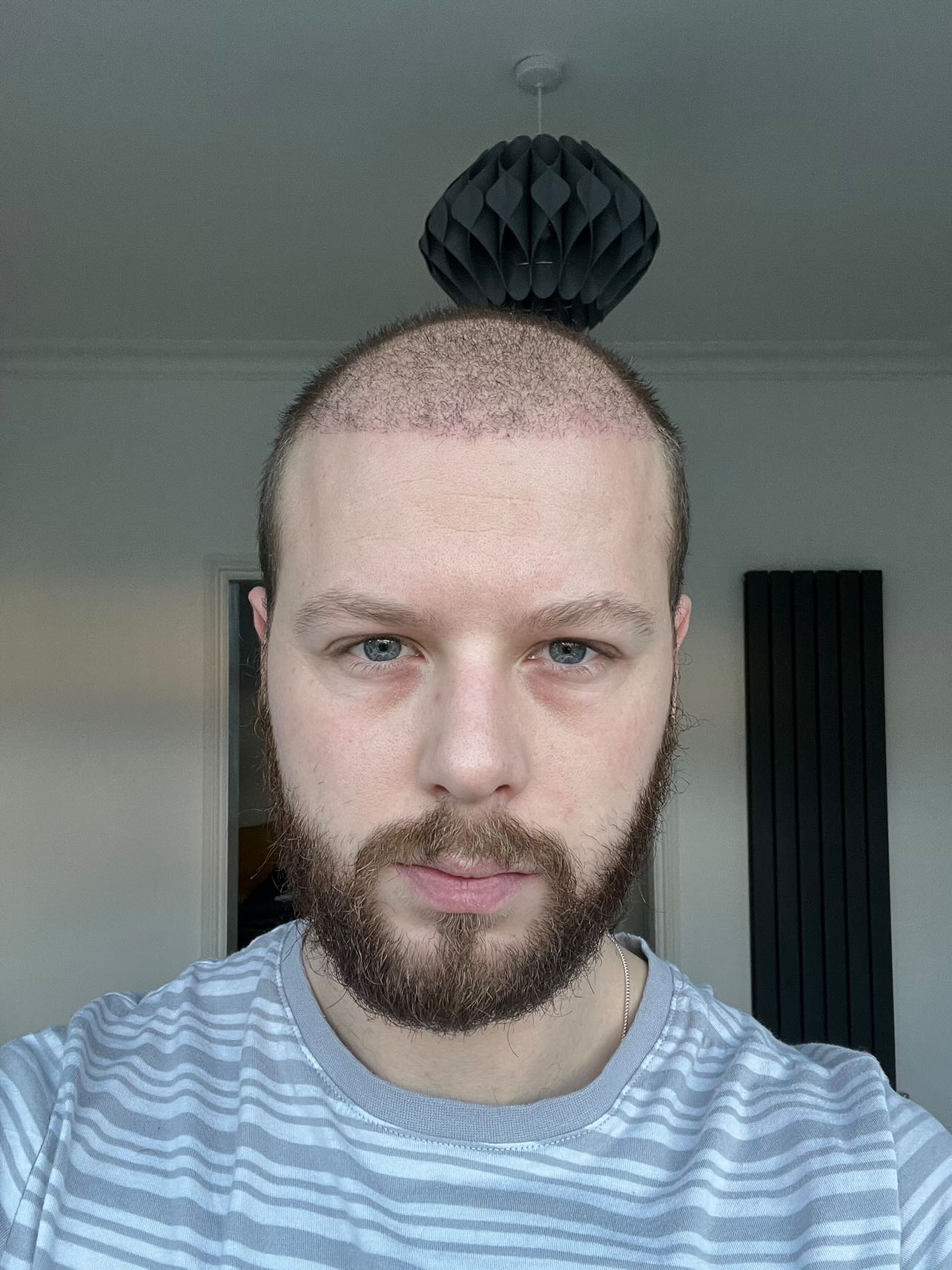 At month 8, the progress became even more impressive. The hair on the sides and crown has fully grown out, giving Rhys a much fuller and more natural look. The transformation is quite remarkable and the results are starting to exceed expectations. Areas that were previously sparse are now covered with dense hair, which provides a huge boost in terms of aesthetics and self-confidence.