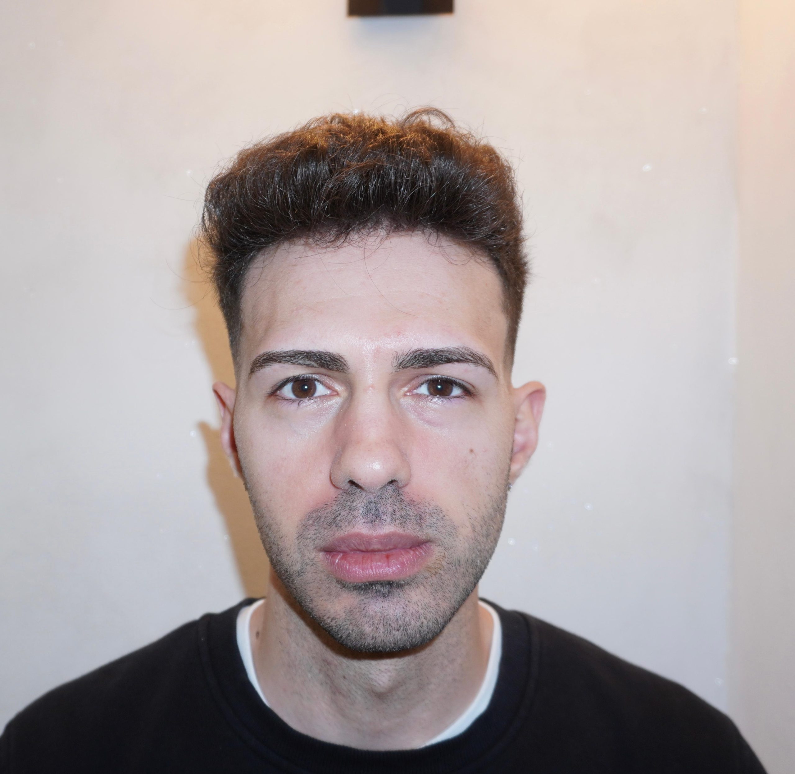 Kevin è un paziente italiano di 29 anni che ha iniziato a soffrire di perdita dei capelli a metà dei vent’anni. Ha notato un diradamento soprattutto nella zona della linea frontale dei capelli. Kevin ha dichiarato di aver pensato di sottoporsi a un trapianto di capelli fin dall’età di 15 anni. La principale causa della sua perdita di capelli è legata allo stress derivante da un’esperienza traumatica e dalla pressione creata da un ambiente lavorativo molto stressante. A volte lavora 18-20 ore al giorno e crede che questo stress abbia accelerato la caduta dei capelli.